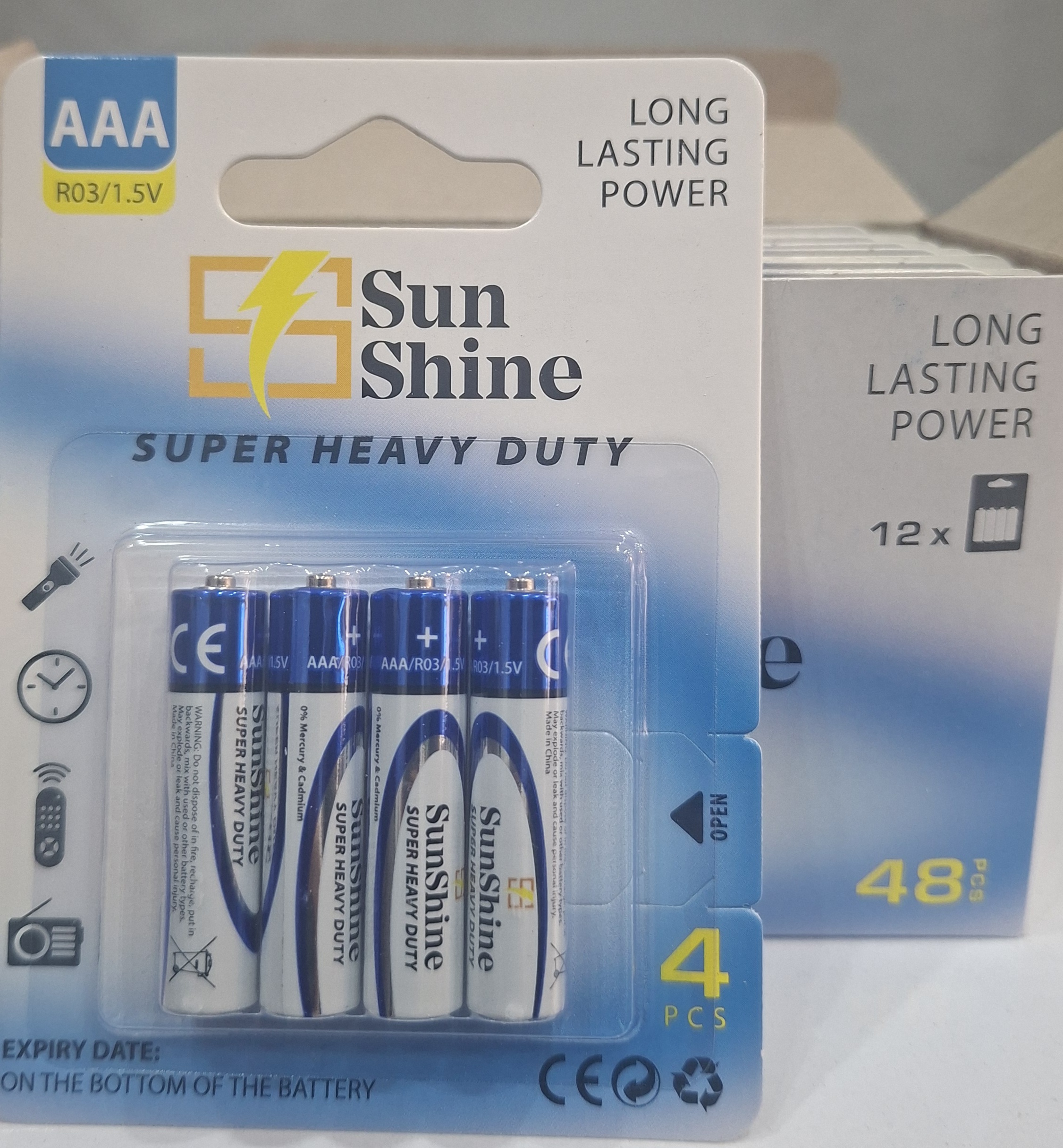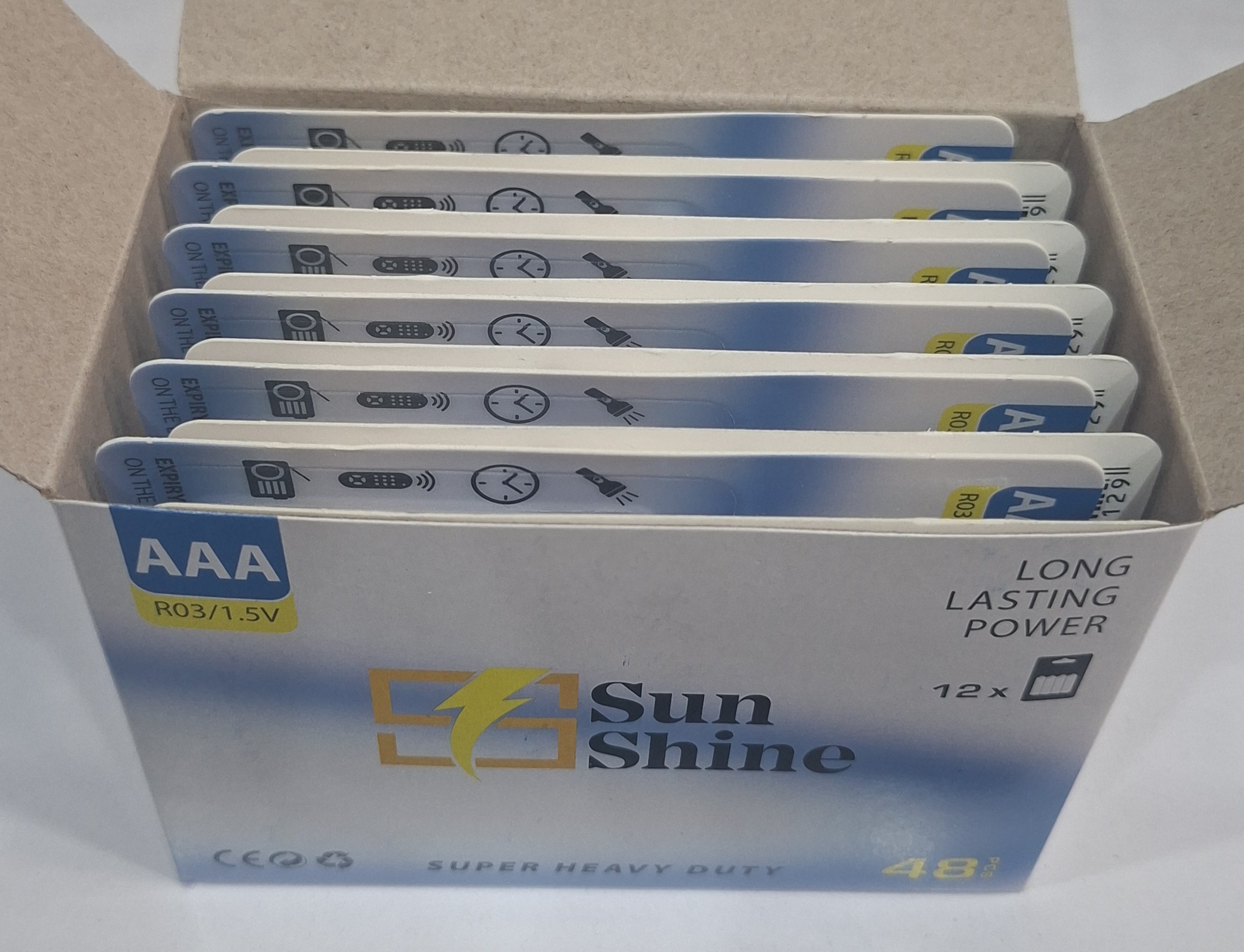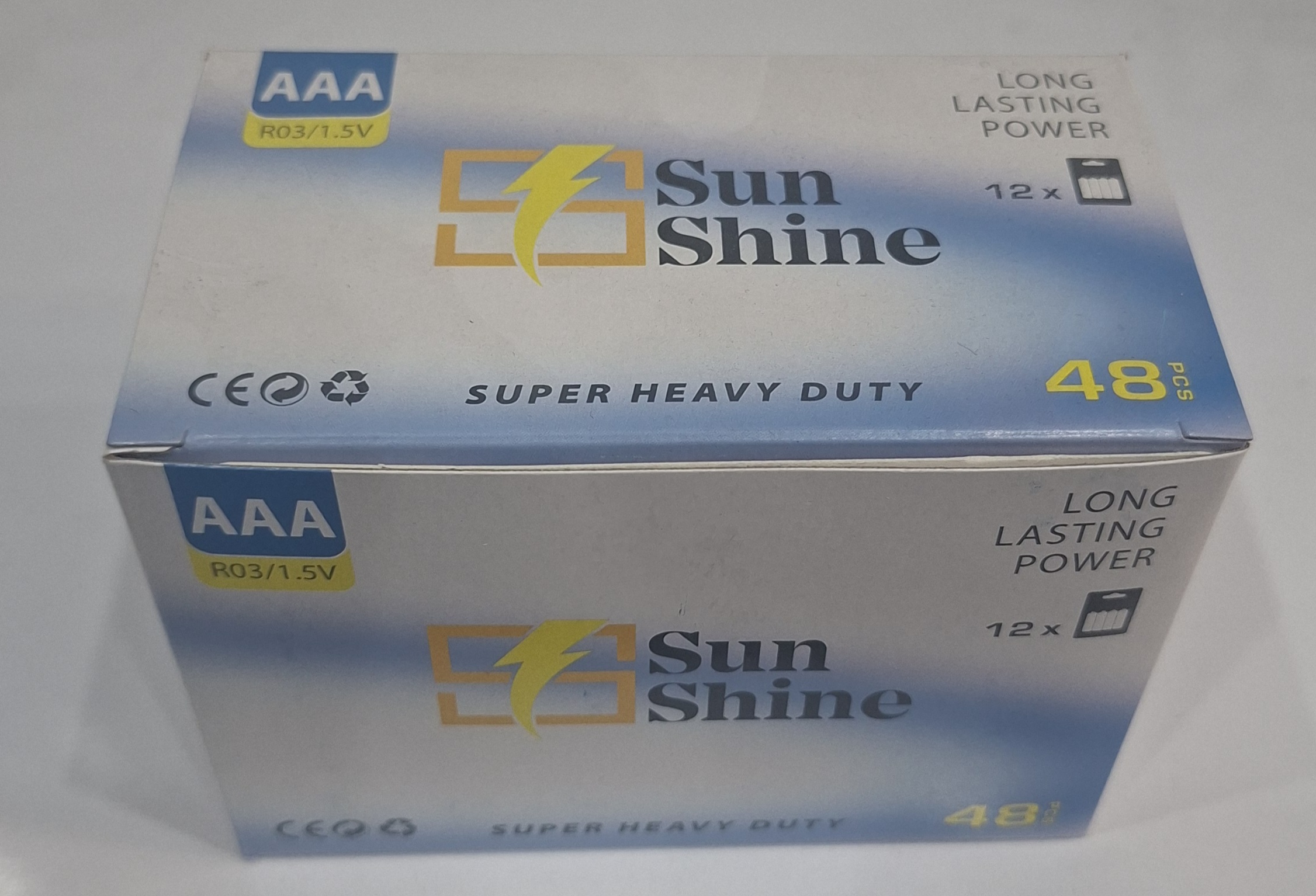 باتری نیم قلمی کارتی معمولی سان شاین جعبه ۴۸ عددی ( ۱۲ کارت ۴ عدد )