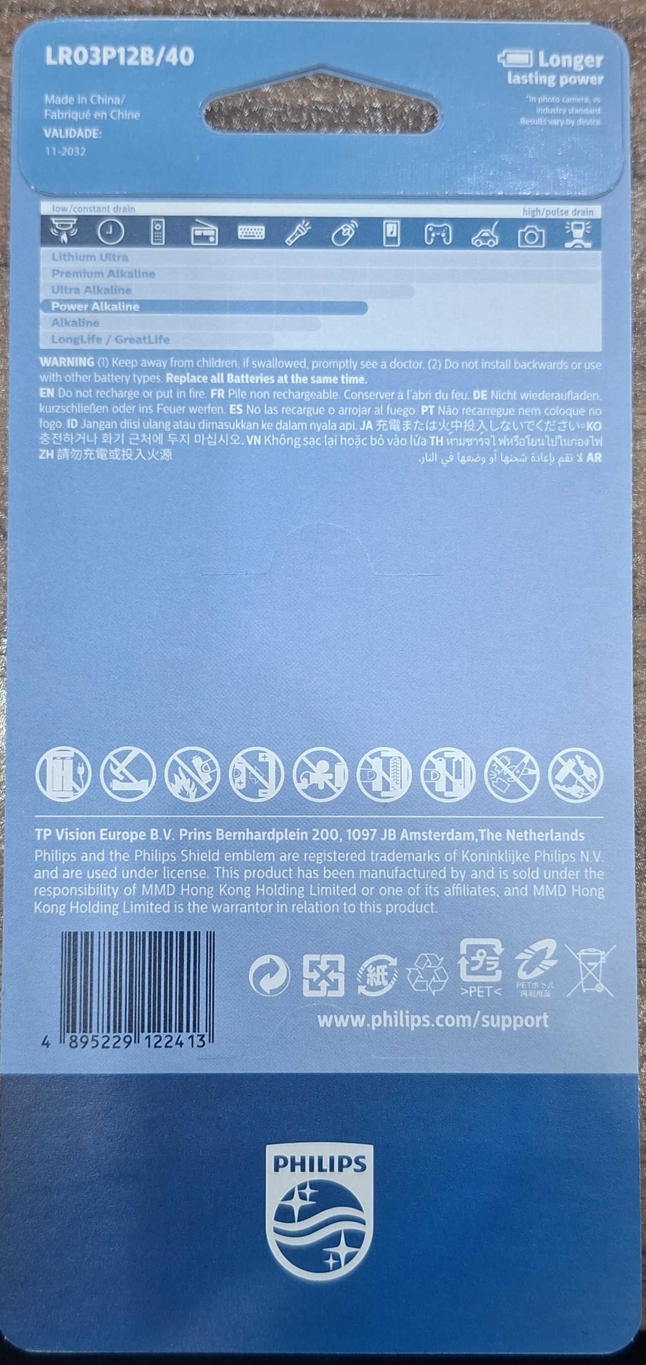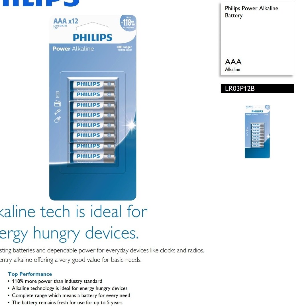 باتری نیم‌قلمی پاور آلکالاین فیلیپس کارت ۱۲ عددی