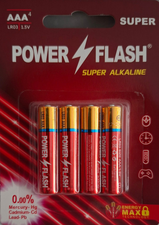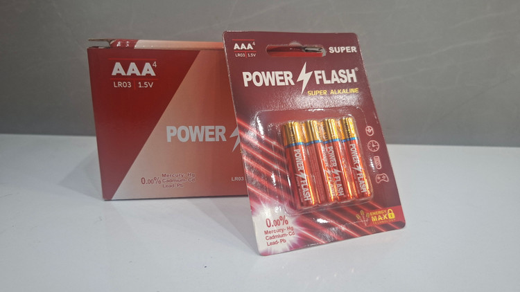 باتریهای نیم قلمی پاور فلش آلکالاین به صورت کارت دو عددی تولید و عرضه شده است. اندازه آنها AAA یا نیم قلمی است؛ تکنولوژی ساختی که در تولید این نوع باتری بهکار رفته ، آلکالاین بوده و دارای پایداری انرژی الکتریکی و عمر مفید طولانی است. این مدل گزینهای مناسب برای تامین انرژی الکتریکی وسایلی مانند ساعت ، اسباببازی ، ریموت کنترل و دیگر دستگاههایی است که انرژی مورد نیازشان را از باتری های قلمی تامین میکنند.
