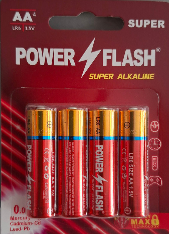 باتریهای قلمی پاور فلش آلکالاین به صورت کارت دو عددی تولید و عرضه شده است. اندازه آنها AA یا قلمی است؛ تکنولوژی ساختی که در تولید این نوع باتری بهکار رفته ، آلکالاین بوده و دارای پایداری انرژی الکتریکی و عمر مفید طولانی است. این مدل گزینهای مناسب برای تامین انرژی الکتریکی وسایلی مانند ساعت ، اسباببازی ، ریموت کنترل و دیگر دستگاههایی است که انرژی مورد نیازشان را از باتری های قلمی تامین میکنند.